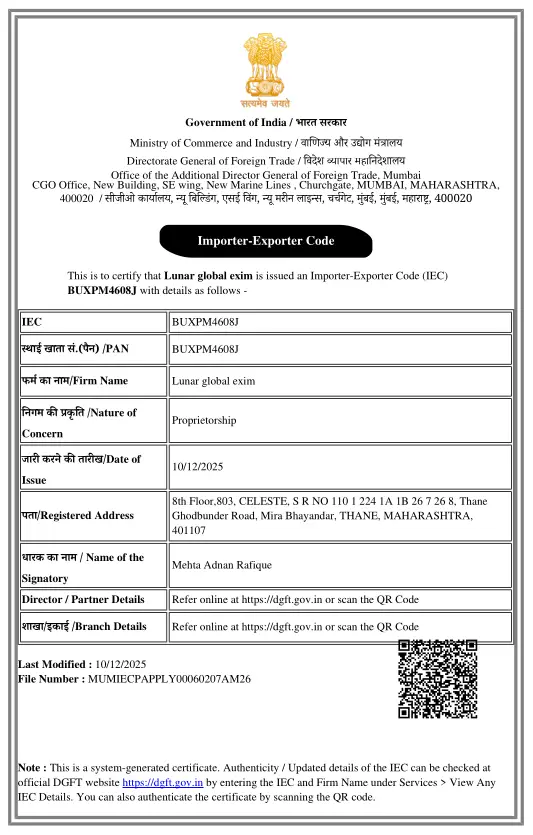 © 2026 Lunar Global Exim. All Rights Reserved.